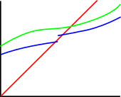 Thus for all \(x\leq A+\varepsilon\), \(f_1(x) > g(x)\). So \(\dot{x} \geq A+\varepsilon\).